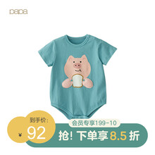 papa爬爬夏男女宝宝纯棉动物印花包屁衣新生儿婴儿爬服哈衣0-3岁 绿色 80cm
