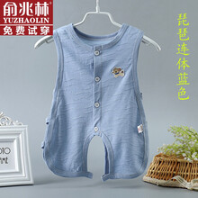 ℂ官方℘俞兆林同款宝宝夏季透气琵琶衣新生婴儿无袖连体衣棉薄款背心哈衣空调爬服 琵琶哈衣蓝色 80cm(9-14个月