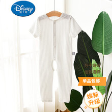 【特价】迪士尼0-6岁宝宝短袖长裤连体衣婴儿开裆哈衣纯棉网眼爬服轻薄儿童空调服睡衣夏天小孩子穿凉快好 白色网眼 偏小一码 120码(建议身高110cm...