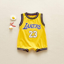 水花童 婴儿连体衣夏装宝宝无袖背心短爬小宝宝篮球服新生儿运动服夏网红爬服 23号 黄色 73