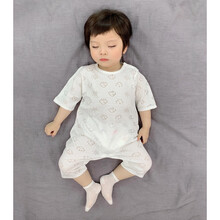 婴儿半袖长裤连体衣衣服中袖薄款无骨烂花冰丝睡衣新生儿爬服哈衣宝宝夏装 白色 中袖九分裤 73cm(建议6-9个月17斤以内)