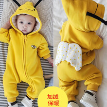 秋冬季婴儿连体衣服双层加厚哈衣爬服新生儿宝宝冬装外出服拉链潮 黄色加绒款 80cm