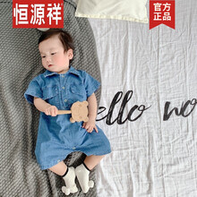 恒源祥 《国货之光》恒源祥 《国货之光》六一韩国婴儿连体衣男宝宝爬爬服软牛仔薄款工装风短袖哈衣宽松夏 牛仔连体衣 3码,建议身高79CM