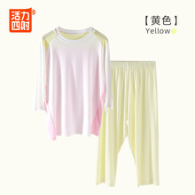 活力四射儿童睡衣套装女童夏季薄款宝宝睡衣春秋长袖长裤莫代尔家居服中大童舒适透气空调服 HJ111201黄色【莫代尔】 120cm(建议体重30-40斤)