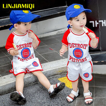 邻家米其童装男童套装夏装2021新款1-3-4-6岁儿童运动两件套2男孩夏季3宝宝4小孩衣服 XT1216(T恤+短裤)-红 色 110码建议身高100-110cm(3-4岁)