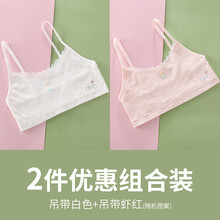 【舒适亲肤】迪士尼适合10-15岁女孩青春发育期女孩少女文胸儿童防凸点小背心女小学生女童初中生内衣 吊带款白色+虾红 M 适合55-90斤
