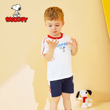 史努比SNOOPY童装男童短袖套装儿童短袖t恤短裤两件套宝宝夏天衣服 撞色时尚套装-红色 110CM