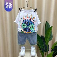 Disney/迪士尼同款男童夏装套装2021新款洋气宝宝时髦衣服儿童夏季韩版短袖两件套潮 白色 90cm