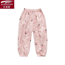 乐希源【柔软面料】儿童防蚊裤夏季外穿薄款裤子新款夏装女童宝宝花色洋气灯笼裤 粉色云朵 140cm