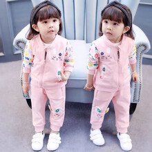 小丑童话童装女童春装套装宝宝春秋款儿童两件套开衫上衣外套+裤子洋气小童1-3-5岁小女孩衣服 粉色 120码建议4-5岁(110-120cm)