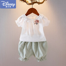 迪士尼 女宝宝夏装套装2021年新款1一3岁洋气女童夏季衣服婴儿童夏天童装 绿色 90cm