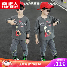 南极人童装男童套装秋装2021新款儿童休闲两件套中大童衣服12岁卫衣运动裤子韩版帅气小男孩运动服 灰色 90