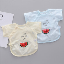 新生儿半背衣0一3婴儿衣服纯棉夏天新生的儿夏季薄款半袖短袖宝宝和尚服 19034西瓜半袖 黄色+蓝色 超值2件装 52码,6-10斤宝宝