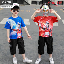 巴拉巴拉旗下Badibadi 奥特曼衣服男童夏装套装2021新款小儿童帅气两件套宝宝男孩夏季潮 蓝色 130