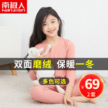 南极人儿童内衣套装无痕保暖内衣男童宝宝睡衣秋冬中大童小孩女童秋衣秋裤套装 女童-橡皮粉 160(建议身高140-150cm)