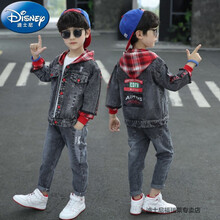 迪士尼男童秋装牛仔套装2021新款春秋季儿童休闲帅气中大童长袖8两件套9潮12岁小孩子秋天衣服 红色 160