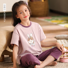 云想衣儿童睡衣女童夏季纯棉薄款短袖长裤空调服中大童女孩宝宝家居服套装 AA1298 14码/140CM