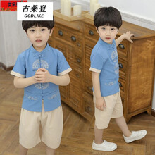 奥米鼠童装男童宝宝唐装男儿童中式服装中国风薄款民族风短袖套装汉服2019夏季新款男中小童古装汉服两件 蓝色 110码建议身高105cm左右