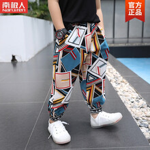 南极人品牌童装官方店新品 男童防蚊裤2021新款夏季儿童冰丝裤男孩裤子薄款宝宝灯笼裤哈伦裤 蓝色方块 90cm