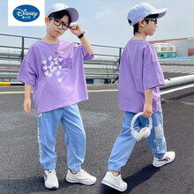 ℘ 迪士尼同款旗舰官方店毕买童装男童运动套装12十10中大童夏装13网红薄款男孩帅气短袖衣服潮15岁 紫色 120cm