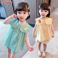 带禧兔童装女童套装夏装儿童套装女宝宝衣服夏季运动幼童中小童夏款1-7岁女孩休闲无袖T恤短裤两件套 绿色 100码建议身高85-95cm