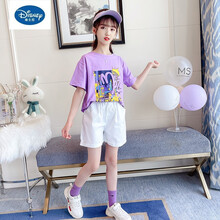 ℘ 迪士尼同款旗舰官方店毕买童装女童网红套装夏装2021新款大童夏季短裤薄款洋气两件套女孩衣服潮 紫色 120cm