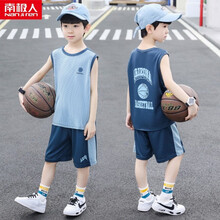 南极人童装男童运动套装儿童夏季速干衣2021新款夏装篮球服中大童无袖背心短裤两件套男孩球衣学生训练服 蓝色 110