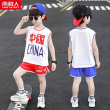 南极人童装男童运动套装夏装2021新款中国队儿童篮球服中大童无袖背心短裤两件套男孩球衣学生夏季衣服潮 红色 100