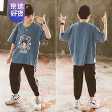 Disney/迪士尼同款儿童装男童夏装套装夏季2021新款帅气短袖夏款运动衣服中大童男孩 雾霾蓝 120cm
