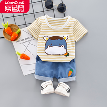 乐芭鼠童装儿童套装夏季薄款洋气男宝宝衣服夏装宽松运动1-2-3-4岁女小童短袖T恤两件套 黄色 90码建议1-2岁(身高80-90cm)