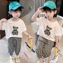 蜡笔传说童装女童套装夏装儿童套装女宝宝衣服夏季运动幼童中小童夏款1-7岁女孩休闲短袖T恤裤子两件套 白色 110码建议身高95-105cm
