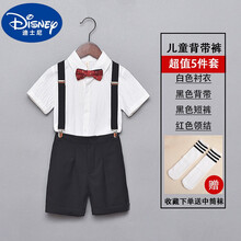 迪士尼新品男童礼服套装时尚男孩小主持人服装儿童背带裤演出服夏季帅气英伦小孩子夏天穿的西服 背带5件套 13码/120cm