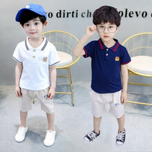童装男童套装儿童夏装2021新款中小童宝宝时尚翻领短袖polo衫两件套0-4岁小孩衣服 熊头白色 100码(建议身高90cm左右)
