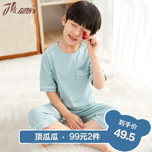 顶瓜瓜儿童睡衣纯棉男童女童家居服套装薄款宝宝小女孩春秋夏季短袖空调服中大童学生居家服小孩七分裤家居服 豆绿 170cm