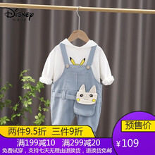 迪士尼童装儿童背带裤套装女宝宝衣服春秋儿童两件套运动时尚可爱婴幼儿外出服女童卫衣时髦休闲套装1-6岁 蓝色 100