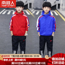 南极人童装男童套装秋装儿童外塔韩版帅气连帽防风夹克休闲运动长裤2021秋季新款5-12岁学生男孩衣服 蓝色 130