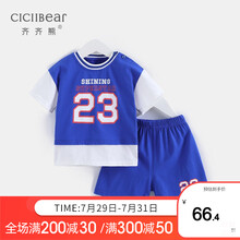 齐齐熊男童夏装套装2021夏季新款宝宝短袖两件套洋气儿童运动服薄 蓝色 120cm(60M建议身高108-114cm)