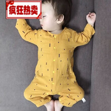 界方【新品】1-14岁6岁洋气小孩夏天穿的婴儿衣服夏0薄款长袖3纱布韩版爬爬服6纯棉新生儿睡衣宝宝 黄色 会有点色差 66 3-6个月左右