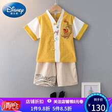 迪士尼儿童汉服男童中国风夏季薄款唐装幼儿园宝宝古装超仙表演出服套装一周岁礼服男孩夏天衣服 官方旗舰:黄色 官方旗舰:140