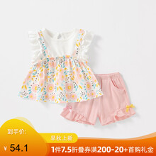 杰里贝比女童套装童装儿童夏装婴幼儿衣服女宝宝薄款小童洋气套装 米白 110
