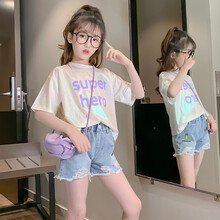 乐可鸭女童套装夏装新款3儿童T血+短裤6中大童女孩衣服8女宝宝夏季套装儿童套装女 白色 2020款 160