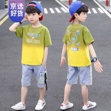 Disney/迪士尼同款儿童装男童夏装套装2021年新款夏季帅气短袖男孩中大童薄款衣服潮 黄色 100cm
