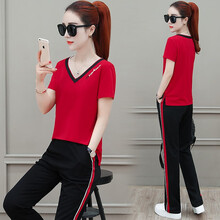 衣捷路 新款夏季运动套装女两件套时尚纯棉短袖运动服套装长裤女士休闲套装夏天薄款幼儿园广场舞跑步健身服 红色-03款 l(适合100斤-110斤 舒适透气...