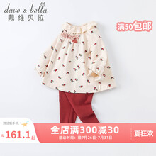 davebella戴维贝拉童装儿童衣服女童套装女宝宝长袖秋装幼儿服装小童秋季女孩秋天两件套 杏色底印花 80cm(建议身高73-80cm)