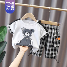Disney/迪士尼同款男童夏装套装夏季韩版2021新款小童帅气炸街男孩宝宝衣服潮儿童装 白色 90cm