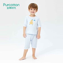 全棉时代春夏男幼童宝宝家居服汗衫T恤纯棉中袖七分裤睡衣裤套装 微蓝 100