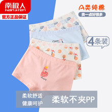 南极人儿童内裤女童纯棉短裤小孩宝宝小女孩小童3婴儿四角平角裤头10青少年中大童12中学生裤衩-15岁 女童清新火烈鸟4条装 170码(建议身高150-160cm)