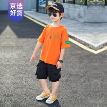 Disney/迪士尼同款童装男童套装夏季2021年新款夏装中大儿童运动帅气男孩短袖衣服12 【套装】9112橘色短袖+19100黑色裤子 110cm