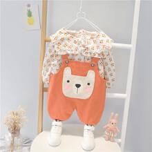 圆圆米米女童装春秋款牛仔背带两件套装婴幼儿童休闲小孩衣服女宝宝春装1-2-3-4-6岁外套 橘色 90