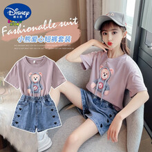 Disney/迪士尼女童套装夏装新款3儿童T血短裤两件套6中大童女孩衣服洋气女宝宝夏天网红套装 粉紫色 小熊套装 150